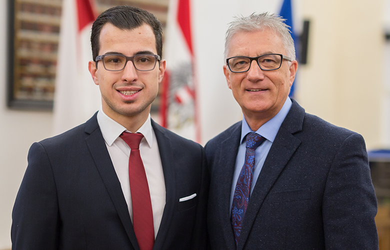 Neo-Landtagsabgeordneter Mag. Tarik Mete mit Klubvorsitzenden Walter Steidl nach erfolgter Angelobung im Salzburger Landtag (Foto: SPÖ/Müseler).