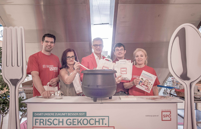 Um für die Kampagne "Frisch gekocht. In allen Schulen!" zu werben, verköstigte SPÖ-Chef Walter Steidl Samstagnachmittag interessierte Besucher_innen im Europark mit einer Gemüsesuppe, zubereitetet mit gesunden Produkten aus der Region. "Das Gespräch mit den Leuten zeigt, dass unsere Forderung nach einer warmen und frisch gekochten Mahlzeit in allen Schulen auf breite Zustimmung stößt", freut sich Steidl und ergänzt: "Wenn das Land Salzburg die Dividenden aus seinen Unternehmungen gezielt einsetzt, wäre dieser Vorschlag in den nächsten zehn bis 15 Jahren Schritt für Schritt umsetzbar."